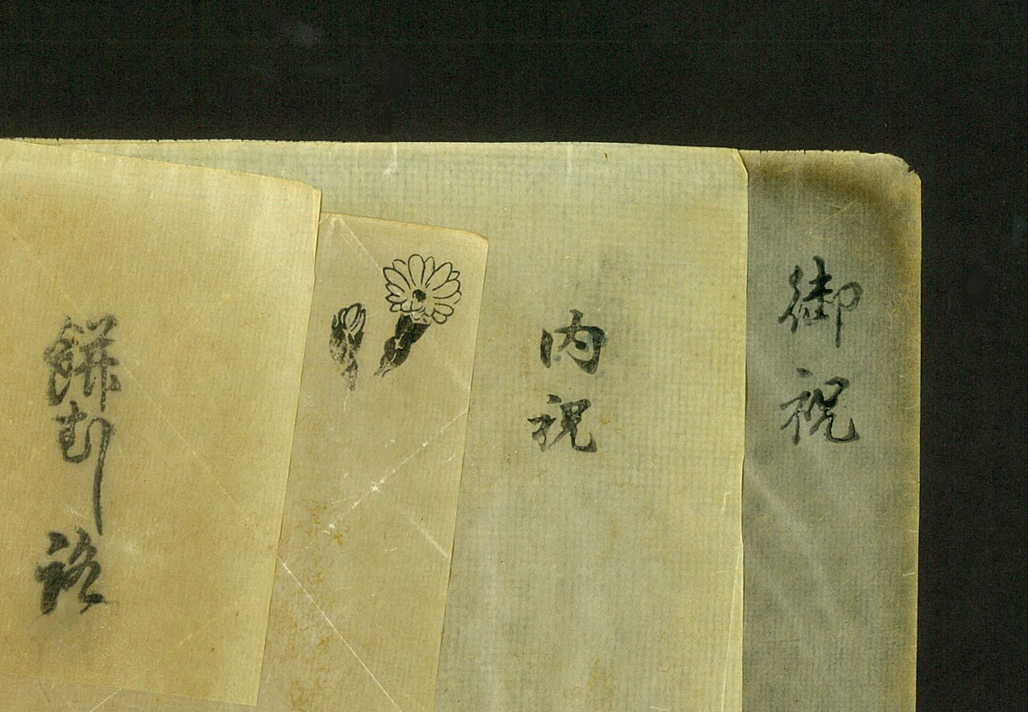 What is indispensable for making the finest gold leaf is actually “Haku uchi-shi(old-beater paper)”. It is the paper that is inserted between the gold when it is beaten and stretched thin. Paper is made by pounding and cutting the fibers of the thymelaeaceae plant several times to soften, then soaking the paper in lye, egg white, or persimmon tannin, and repeatedly pounding and drying it for about one month. The paper determines the quality of the gold leaf, which is why this process is so important for gold leaf craftsmen. We measure and wrap the pure gold mud in this paper and exchange it with the craftsmen, and it is forever unbreakable. The paper has a reverse side and an order of the paper, and the craftsmen stamp the seals of some traditional Japanese signs, sometimes with flowers on it, isn’t it nice?