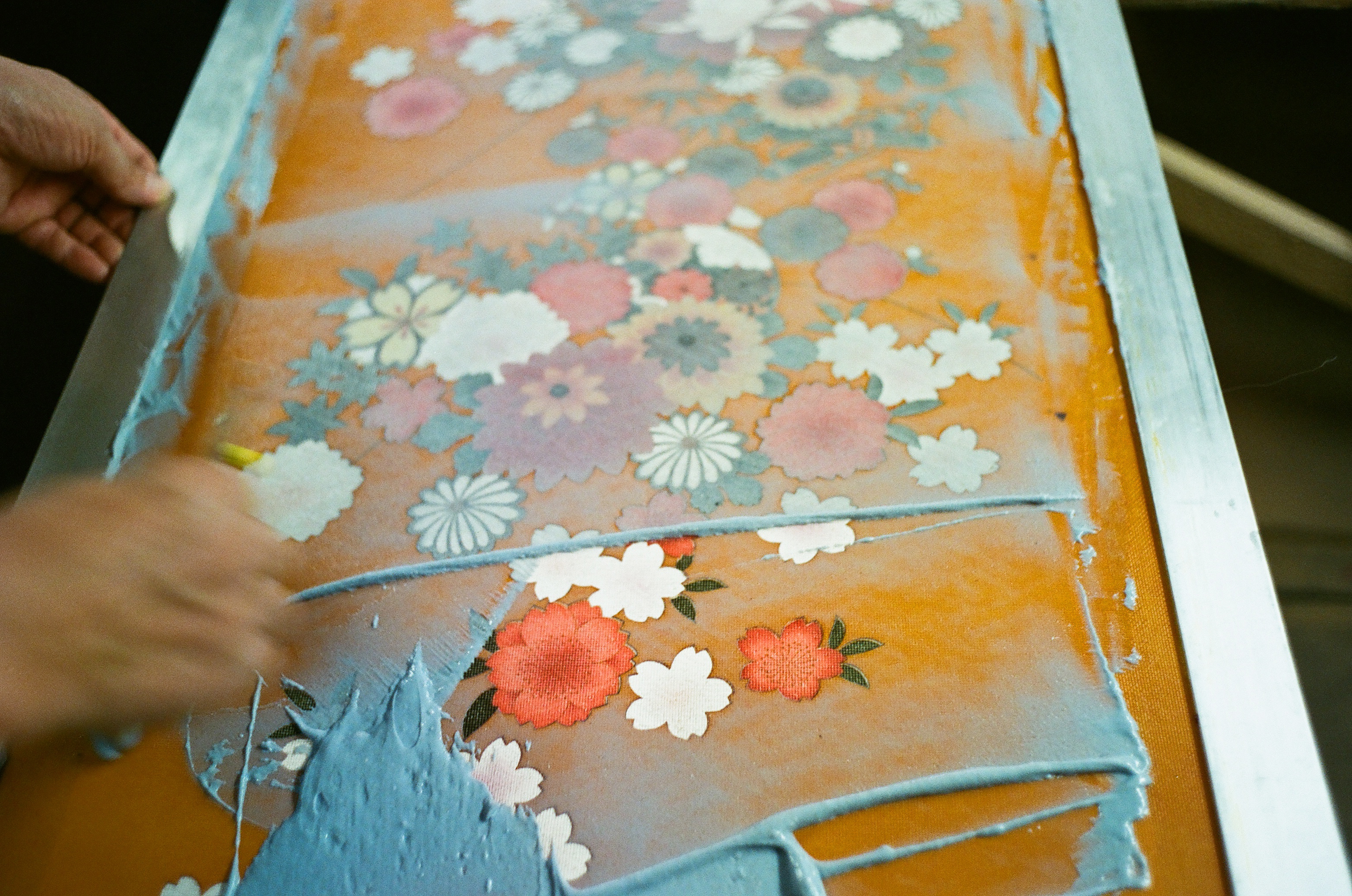 Kata yuzen is a skill that is too good to be lost. On the other hand, the craft requires a large work area and physical effort, so techniques can easily be lost if the work is left unfinished. So, I want people to recognize the beauty of Kata yuzen, and I am still exploring, but I would like to keep people discovering it.